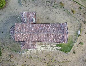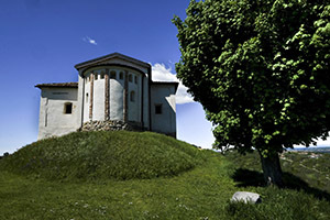 Preesistenze di età romana sono state ipotizzate sulla base di materiali rinvenuti. Uno di questi è il frammento di una lapide, probabilmente un cippo funerario romano, che si trova sulla parete esterna del transetto sud. Venne rimossa dal gradino antistante l’altare durante i lavori eseguiti negli anni sessanta. Sulla lapide compare la scritta SIBI ET LAEVAE PAULENAE UXORI. La lapide, come altri materiali usati nella costruzione della chiesa, viene quasi certamente da resti di insediamenti romani, che i muratori medioevali usavano smantellare per procurarsi pietre e mattoni. Data la posizione elevata del colle, è possibile che in epoca precedente l’edificazione della chiesa, vi fosse una torre di avvistamento romana.
