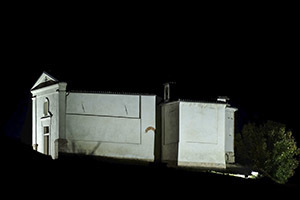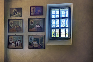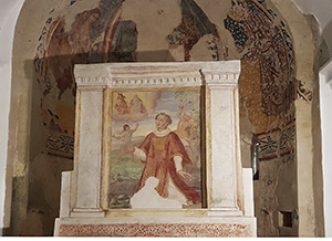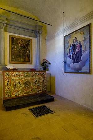 Sul lato sinistro dell’aula principale, lunga e stretta, è visibile un dipinto che raffigura la Madonna con il bambino, Sant’Antonio da Padova e San Giovanni Evangelista, riconoscibili dagli elementi iconografici a loro attribuiti. Il dipinto è stato restaurato nel 2015.
