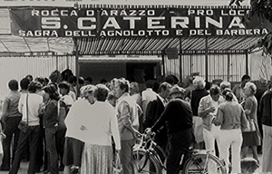 Nel 1973, con la presidenza del Rag. Lorenzo Sacchero, nacque la Pro Loco di Santa Caterina di Rocca d’Arazzo, che da allora si occupò di curare le manifestazioni legate alle tradizioni locali. Le immagini mostrano alcuni momenti della prima Sagra dell’Agnolotto, il 3 agosto del ’74: la benedizione dello stendardo della Pro Loco, alla presenza del presidente Lorenzo Sacchero, dei soci fondatori e delle “Caterinette”, un gruppo folkloristico composto da graziose ragazze della frazione. Tutta la cornice folkloristica lascerebbe però poca traccia se non fosse per i rinomati agnolotti, protagonisti assoluti della Sagra ed apprezzati ben oltre i confini comunali: al “Festival delle Sagre” del settembre astigiano sono uno dei piatti più richiesti e premiati.